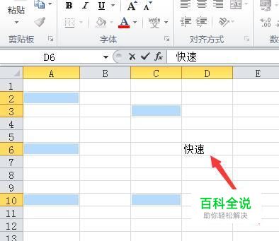 然后输入需要的文字内容,按Ctrl+Enter键,我们看到,相同的内容就自动填入到所有选中的单元格中。