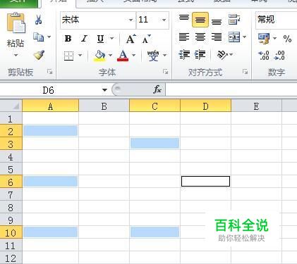 首先,打开Excel,按住Ctrl键不放,点击需要录入相同内容的单元格,如图。