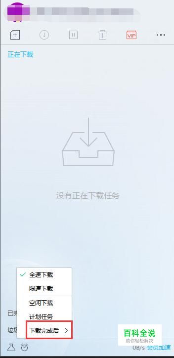 点击该图标,在弹出菜单中点击“下载完成后”选项。
