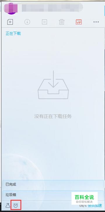 在迅雷主界面左下角找到闹钟形状的图标。