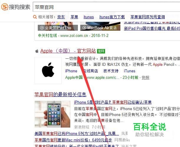 进入之后,搜索“苹果官网”,点击并进入,如图所示。