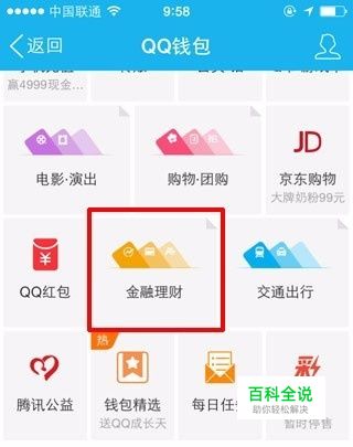 进入到QQ钱包之后,在里面找到下第一个图标出的选项。然后点击就可以在新的窗口里面看到理财通的选项;