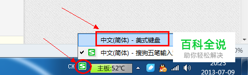 【第二种方法】点击任务栏右边的输入法图标"S",然后再点击第一项“中文(简体)-美式键盘”,这样也可以关闭输入法工具。