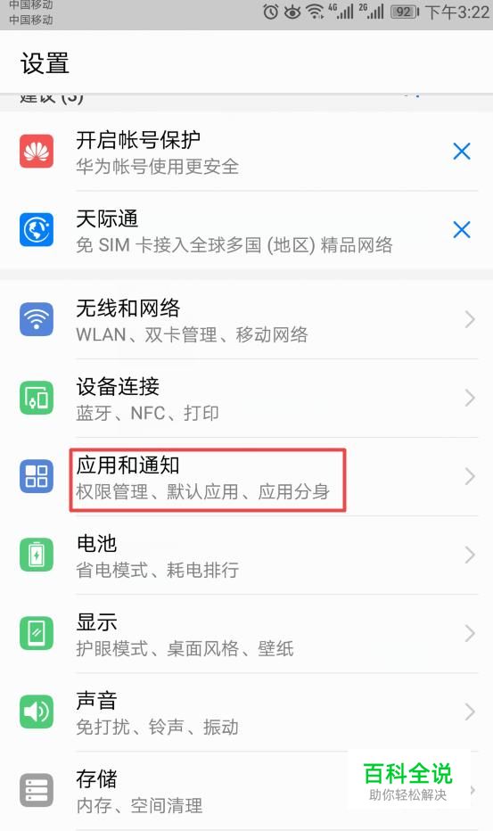 弹出的界面,我们点击应用和通知;