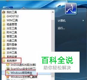 进入win8pe后,在桌面上依次点击“开始-系统维护-Windows密码修改”,如下图所示: