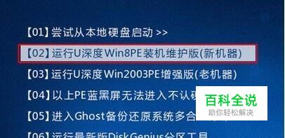 将制作好的u深度u盘启动盘插入电脑接口,开机按快捷键进入主菜单界面,选择“【02】运行U深度Win8PE装机维护版(新机器)”,如下图所示: