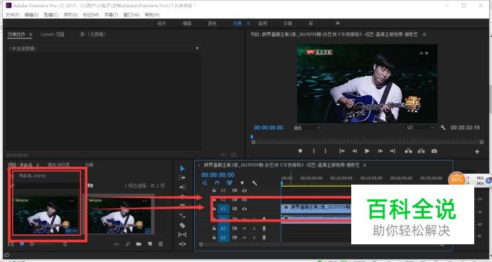 新建项目后,导入需要的视频,并将其拖拽到视频轨道上“V1”