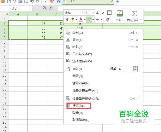 之后我们右击选择行高;