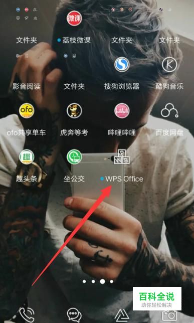 打开手机,找到WPS,点击并进入,如图所示。