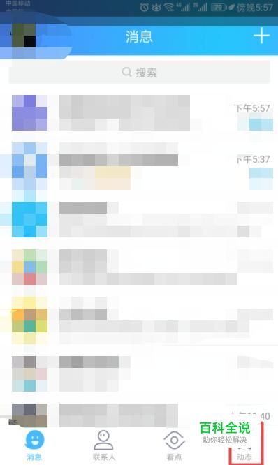 首先,我们打开我们的手机QQ,然后我们点击右下角的动态;