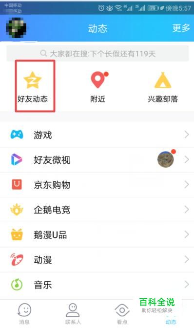 弹出的界面,我们点击好友动态;