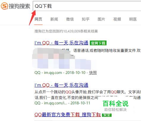 接着在输入栏中输入QQ下载,这样就能出现很多下载网站,然后选择一个官方网站进行下载。