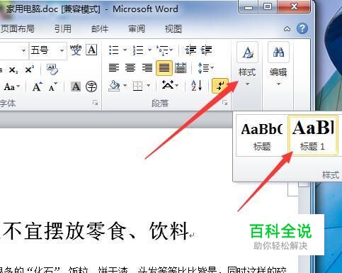 接下来点击功能区的样式,在弹出的项目中右击标题1。