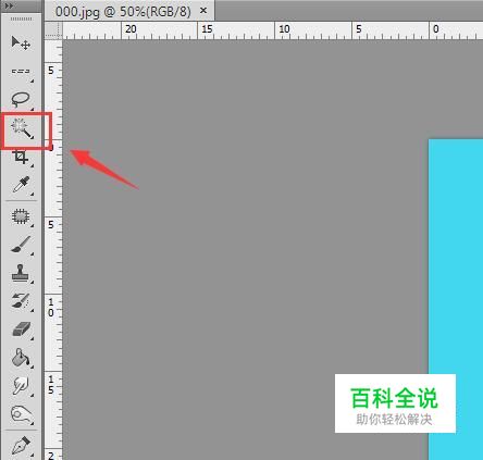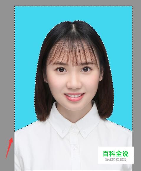 使用ps将我们的证件照打开,然后在工具箱内找到魔术棒工具,如图所示: