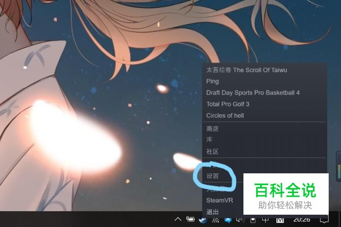 单击右下角的"Steam"图标,找到设置选项,点击进入
