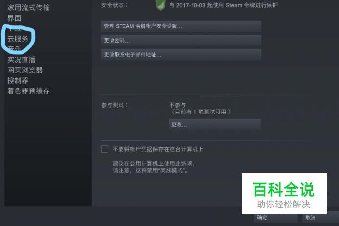 勾选”为Steam支持的程序开启云服务“选项,点击确认