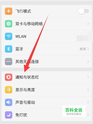 进入之后,点击“通知与状态栏”,进入下一页面,如图所示。