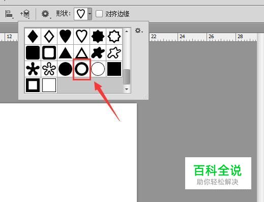点击自定义形状选项在属性里找到形状选项,点击该选项在其内找到环形选项,如图所示: