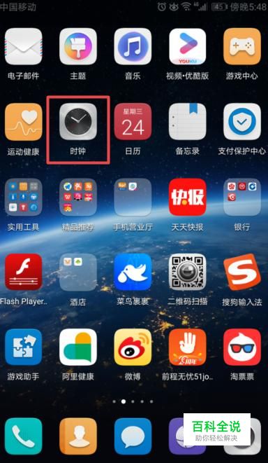 首先,我们打开我们的手机,然后我们点击手机桌面上的时钟;