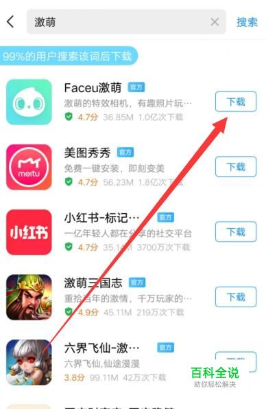 进入之后,搜索“激萌”,将其安装到手机上面,如图所示。