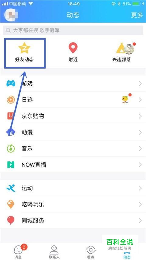 然后点击好友动态,如下图所示。