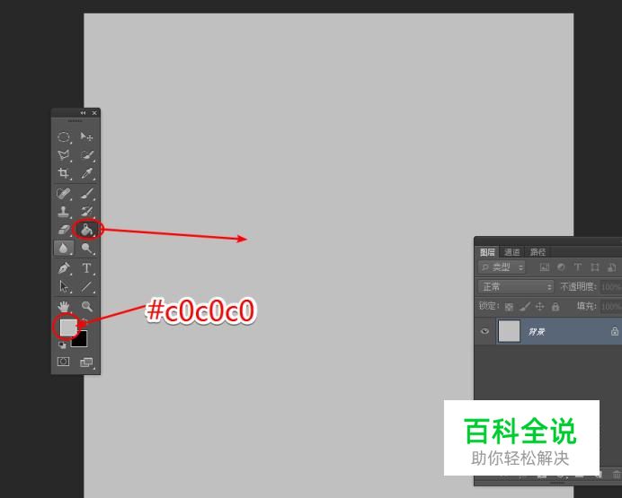 将背景颜色设为灰色(#C0C0C0),通过油漆桶工具填充背景图层。