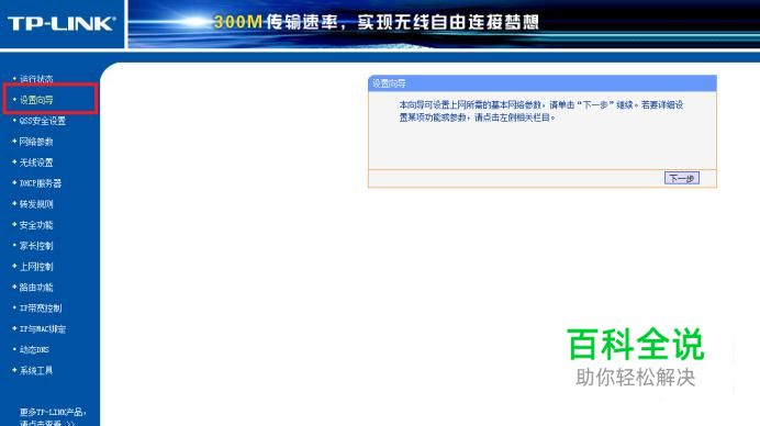 选择左侧“设置向导",选择”下一步“。