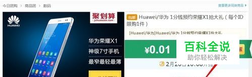 华为荣耀1x在天猫商城首发,还没有开始销售现在就开始预约了,在天猫搞了一个叫【一分钱预约荣耀1x抢大礼】。那要怎么样才能在天猫商城预约到呢?请看下面的操作。