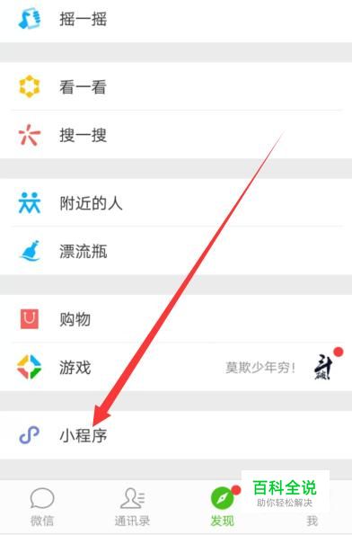进入之后,找到“小程序”,点击并进入,如图所示。