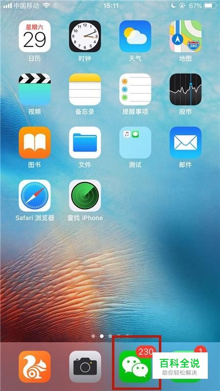 首先在我们的手机桌面上找到微信并点击它,如下图所示。