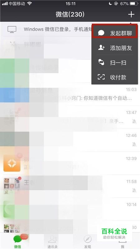 然后选择一个我们自己所创建的微信群,如下图所示。