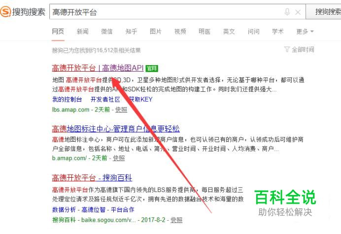 进入之后,搜索“高德开放平台”,点击并进入,如图所示。