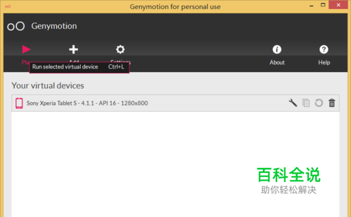 在列表中,选择想要启动的虚拟设备,点击扳手的图标可以对虚拟机进行设置,譬如分配多大的内存、设置分辨率等等,如下图。在弹出的“device setting”界面最后一项“use virtual keyboard for typing”中打勾,