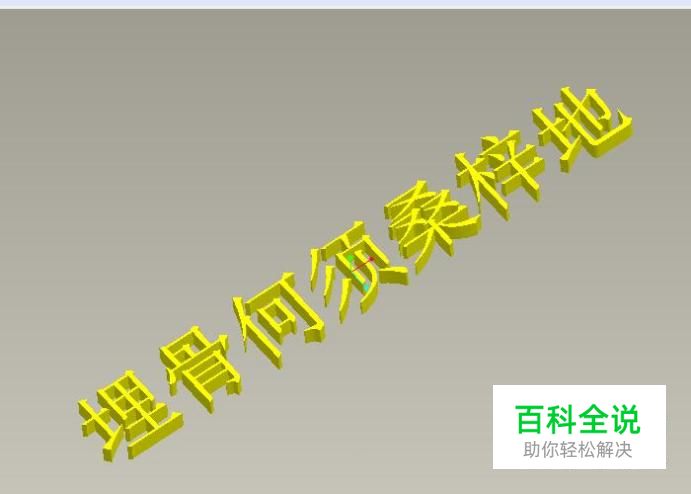 如下图所示, 文字实体拉伸成功了, 然后点击工具栏中的“颜色”图标右方的三角图标, 然后在展开的下拉菜单中点击那个黄颜色的球。