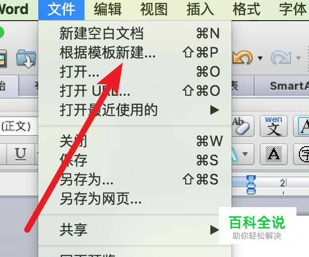 打开word,点击菜单栏上的‘文件’--‘根据模板新建’。