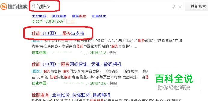 首先,我们需要进入佳能官网,在浏览器搜索“佳能服务”,就能找到佳能官方网站(服务与支持),我们点击进入。