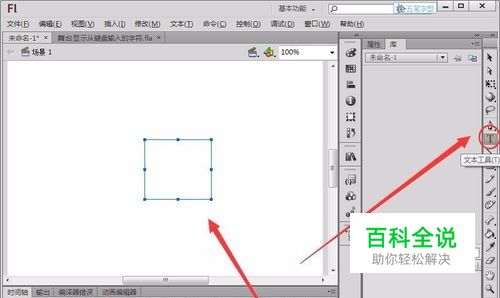 在“编辑栏”选择“文本工具”,在舞台中绘制一个文本框。