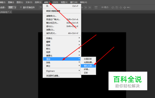 在ps软件中,新建一个800*800的文档,背景色填充黑色,然后在滤镜中添加镜头光晕,如图所示