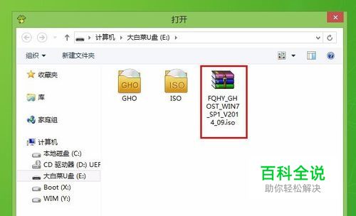 点击“打开”选择存放在u盘里的系统镜像,点击“打开(O)”进入下一步操作