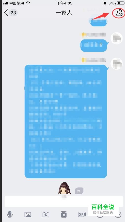 进入群聊之后,如图点击右上角的图标