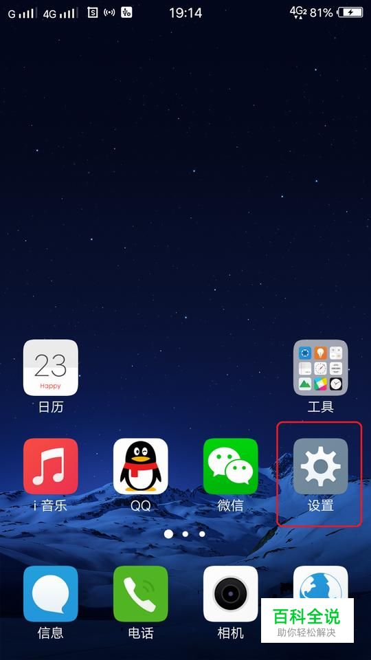 首先,把双卡置于手机卡槽中,一般把主要用来打电话的卡放于“sim卡1”中,通话信号会好一点,我就以卡1用来打电话,卡2用来上网来设置。手机开机后,找到系统自带“设置”。