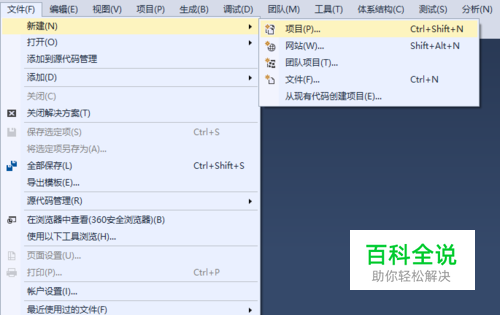 选择 文件->新建->项目