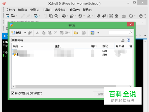 选择新建的会话,点击连接,选择接受并保护,输入root,点击确定