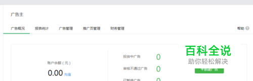 2、进入广告主主页之后,点击绿色新建广告按钮,进行新建广告,如下图所示。