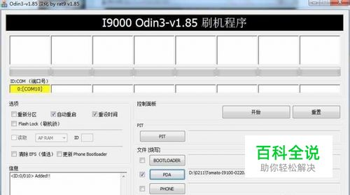 3、启动Odin。将手机用USB数据线连接到电脑,稍等片刻,Odin应该显示手机已连接。