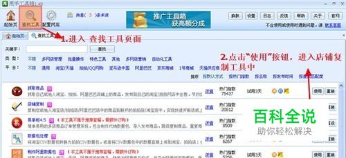 在甩手工具箱查找工具页面找到店铺复制工具,点击后面的立即使用,会进入店铺复制工具中,如图所示