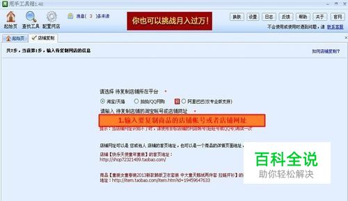 输入要复制的店铺帐号或网址,然后点击“下一步”,如下图所示