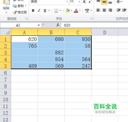 此时所有的空单元格全被选中,输入要填充的数字“0”,按ctrl+enter组合键完成即可,如图所示。