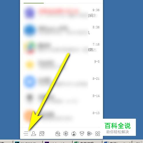 在电脑上,登录QQ;打开QQ主界面。鼠标点击界面左下角的菜单按钮。