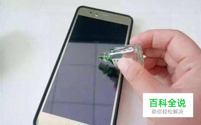 手机上的灰尘擦拭掉后,手机上还余留一些顽固污渍。滴几点风油精到手机屏幕上,要均匀的滴,最好每个角落都滴到。